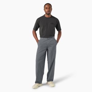 The 248 is inspired by our iconic work pants and updated with an eye-catching pinstriped pattern. The pants feature a loose fit and straight leg style that tapers slightly. They’re crafted from 100% brushed and peached cotton for a softened feel and long-lasting fabrication. They’re complete with authentic Dickies work pant details. including welt back pockets. an additional drop-in phone pocket at the side. and a zip-fly with metal clasp closure.