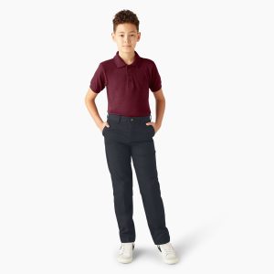 Send him to school looking sharp in Dickies’ Boys’ FlexWaist® Slim Fit Straight Leg Ultimate Khaki Pants. Featuring a mechanical stretch and a Flexwaist® adjustable waistband. he can stretch his legs and move freely all day. Select sizes have reinforced knees to keep him comfortable on those rough-and-tumble days on the playground—all at a value you’ll love.