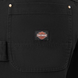 Dickies x Harley-Davidson combines legendary quality with bold designs inspired by a rebellious spirit. Our men’s carpenter pants are updated for the collection with co-branded labels. utility pockets. and a key ring detail on the back waistband to keep your keys close. The pants have a relaxed fit. classic straight leg style. and are crafted from a durable. 100% cotton duck fabric for durability you can trust.