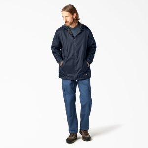 The lightweight layer that’s all you need. the Dickies Fleece Lined Hooded Nylon Jacket deals with any wild weather. A rugged ripstop shell shrugs off water and resists tears. Meanwhile. flexible fleece lines the jacket. hood. and even the side hand pockets to warm you up when the days get long.