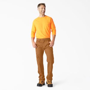 Having a tough day at work? Good thing these Men’s FLEX DuraTech Relaxed Fit Duck Cargo Pants are built to last tougher. Reinforced seams that stand up to years of wear and tear. an Active Waist. and multiple functional pockets that help keep you on the go all work together. FLEX DuraTech makes these pants strong yet comfortable. as this flexible fabric stretches as you move. A Durable Water Repellent (DWR) finish can help keep you dry in light rain. The double-knee reinforcement includes room for knee pads. The result–our comfortable but tough cargo pants. Exactly what you need.