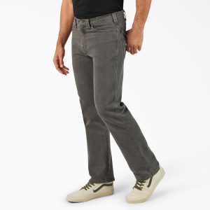 Our Men’s FLEX Regular Fit 5-Pocket Jeans are comfortable enough for a tough workday. yet stylish enough to wear any day. Featuring Dickies FLEX. this denim stretches to keep up with every move you make while offering durability you can trust and count on. It’s also constructed with double-needle stitching. and provides a regular fit with a straight leg style. The 5 pockets can help you move through your day with your hands free. And the antique brass button fastener adds a touch of flair.