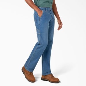 The Dickies Men’s FLEX Regular Fit Carpenter Utility Jeans are built from cotton-blend denim. so you get that right amount of stretch every time you move. Bend. twist. reach–you can do it all in these jeans. That’s thanks to the regular fit. straight leg style. and double-needle reinforced stitching. Adding to the functionality are the tape measure loop. utility pockets. and a ruler pocket. These FLEX Regular Fit Carpenter Utility Jeans work great in the workplace. even if you aren’t a carpenter.