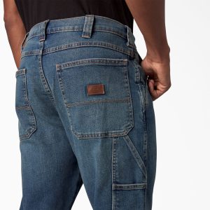 The Dickies Men’s FLEX Regular Fit Carpenter Utility Jeans are built from cotton-blend denim. so you get that right amount of stretch every time you move. Bend. twist. reach–you can do it all in these jeans. That’s thanks to the regular fit. straight leg style. and double-needle reinforced stitching. Adding to the functionality are the tape measure loop. utility pockets. and a ruler pocket. These FLEX Regular Fit Carpenter Utility Jeans work great in the workplace. even if you aren’t a carpenter.