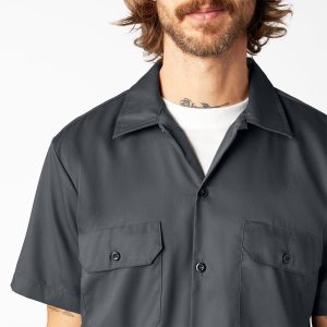 Easy. comfortable. and never clingy. The Dickies Men’s FLEX Slim Fit Short Sleeve Work Shirt is a year-round workwear staple. Featuring a slimmer cut that brings this shirt closer to the body. the construction of this shirt doesn’t sacrifice mobility or comfort. This moisture-wicking work shirt has the ventilation to stay cool. dry. and comfortable while you work. The FLEX fabric has stretchabiity and comfort. Two flap chest pockets with button closures provide storage. including a pencil divider for easy organization.