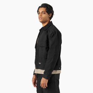Add this to your rotation for an elevated workwear staple. The Fort Smith men’s jacket features a relaxed fit with a slightly boxy cut for men. It’s crafted from 100% cotton and features oversized patch pockets with pencil division. a forwarded shoulder seam for a casual look. adjustable waistband and cuffs. monochrome elbow patches. and a hidden front single zipper closure. It’s a timeless jacket with authentic Dickies detailing and fabrication.