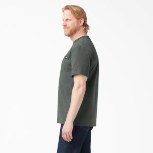 Dickies Men’s Heavyweight Heathered Short Sleeve Pocket T-Shirt is a long-lasting workplace tee. Get the job done thanks to this durable heavyweight heathered cotton/polyester blend that stays comfortable throughout the workday and beyond. Store writing tools in its chest pocket with pencil divider. finished with a Dickies logo. The reinforced neck and shoulder seams are built to last. while the tagless neck label ensures an even more comfortable fit so that you can focus on the task at hand. Wear it alone or as a layer.
