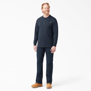 The Dickies Men’s Heavyweight Long Sleeve Henley T-Shirt is the kind of versatile tee that belongs in every workwear wardrobe. Built to last longer. this heavyweight t-shirt with long sleeves has reinforced taped neck and shoulder seams that won’t unravel. a three-button closure at the neck. and a tagless label for non-chafing comfort. all day long. Enjoy the 100% cotton jersey knit as a t-shirt on its own or as an extra layer while you get the job done. Wherever they’re put to the test. Dickies Heavyweight Henleys are as hardworking as they come.