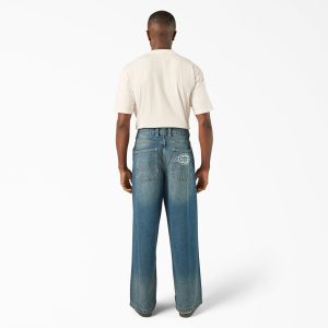 Our Hilham men’s jeans offer a modernized look with their mid rise and loose fit. The men’s jeans are made from a heavyweight 13oz. 100% cotton denim for a classic. long-lasting construction. They have antique copper rivets and trims. large back pockets with our embroidered logo. and a zip fly and button closure.