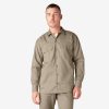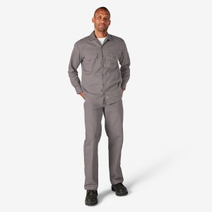 The Dickies Men’s Long Sleeve Work Shirt is one of our classic designs. providing both comfort and style. Made to last. this dependable work shirt. made of durable fabric. has a functional build and non-break melamine buttons. This iconic design features a generous cut through the shoulders and chest that provides freedom of movement. Advanced moisture-wicking technology and an easy-care stain release finish makes this work shirt perfect for both the workplace and for fun after work. The shirt also has two functional chest pockets. including one with a pencil division. doghouse sleeve plackets. and a woven Dickies logo label.