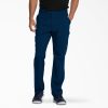 Men’s Fit V-neck top features Dickies logo twill tape at the back neck. a double chest pocket with self strapping and a D-ring. Also featured are patch pockets. a stretchy Galaxy Blue knit interior pocket (White knit pocket on White). a back yoke. a center back seam and side vents.