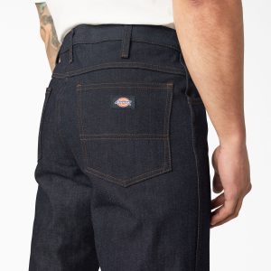 Our Dickies Men’s Regular Fit Jeans aren’t just your regular pair of jeans. Backed by many decades of history and legacy. their authentic. classic shape is great for your workday and beyond. These functional. durable. original blue jeans have reinforced seams and brass rivets to resist tearing. The seven keystone belt loops prevent bunching. The five-pocket style includes extra-deep front and back pockets.. There is even a discreet coin pocket that can hold a small multipurpose knife. These denim jeans also look great. too. What more can you ask for?