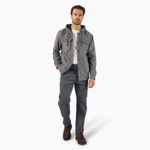 Grab a workwear staple you can wear all season long. This men’s shirt jacket features a 100% cotton flannel bonded to warm fleece for a lightweight construction that helps keep you comfortable without sacrificing your mobility. The jacket has a relaxed fit. functional chest pockets. and a convenient snap front closure.