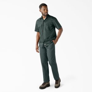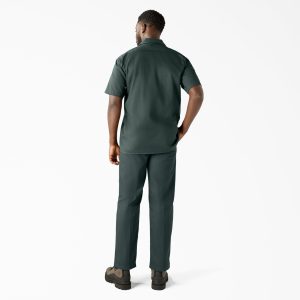 Our Men’s Short Sleeve Work Shirt has been one of our top styles since Dickies started in 1922. There’s a reason this style has stood the test of time. This original work shirt is crafted from our wrinkle-resistant classic twill fabric. with a generous cut through the shoulders and chest that provides freedom of movement. and square hem design for easy tucking. The piece features secure chest pockets with a pencil slot and non-break buttons. The shirt has a moisture-wicking finish to help keep you cool and dry all day long. Wear it buttoned up or over a simple tee.