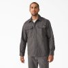 The Tradebuilt collection offers utility performance workwear designed for specialized trades. Our Tradebuilt men’s shirt jacket is built from rugged duck canvas with just enough stretch to enable mobility. It has a brushed mesh lining on the interior for breathability. a snap and zipper front closure. snap-close chest pockets. and a Durable Water Repellent finish to help keep you dry in misty weather conditions.