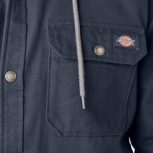 Keep going in any kind of weather with our Men’s Water Repellent Duck Hooded Shirt Jacket. Its rugged canvas duck material is upgraded with a Durable Water Repellent (DWR) finish. while the lined jersey hood adds extra warmth so that you can focus on getting the job done. Store your work essentials in the chest pockets. and use the side pockets with fleece to warm your hands when the temperature drops. This Water Repellent Duck Hooded Shirt Jacket is a relaxed fit and versatile easy-on layer that you can count on.