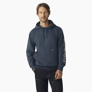 This Men’s Water Repellent Sleeve Logo Hoodie is made from soft fleece. adding comfort. Yet it has a Durable Water Repellent (DWR) finish. ready to be put to work in wet conditions. With a three-piece hood and rib-knit waist and cuffs. this hoodie helps you work in tough weather while you stay comfortable. You can easily layer this hoodie. too. Warm up your hands in the kangaroo pocket or use it to store small work gear. The left sleeve Dickies Wordmark graphic gives it style. too. This hoodie ensures you get the job done while staying comfortable and dry.