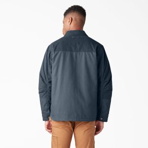 Crafted with 100% cotton duck canvas with a Durable Water Repellent finish. this Men’s Waxed Canvas Service Jacket is wind-resistant and suitable for all of your outdoor and workplace needs. The coat has a classic Dickies design. with a soft. quilted interior. It features contrasting wax-coated piecing for both style and weather protection. The jacket has triple-needle reinforced stitching to add durability. You can store your items in the jacket’s two lined hand pockets. a secure zippered chest pocket. and a back hem stash pocket.