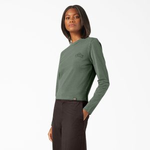A comfortable. understated style perfect for daily wearing. The Christiana women’s long sleeve t-shirt features a slim fit. 100% garment dyed cotton. and subtle vintage-inspired artwork on left front chest.
