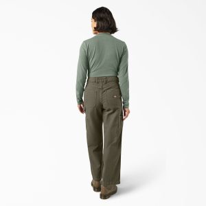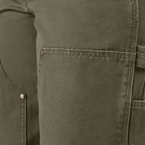 Double up on style and authenticity with these women’s double knee canvas pants. The pants have a mid rise. loose fit. and casual wide leg style. They’re made from 100% cotton canvas for long-lasting comfort and utility. The pants are also equipped with double knee reinforcements for extra durability. a hammer loop. ruler pocket. extra tool pocket. and antique brass button closure.
