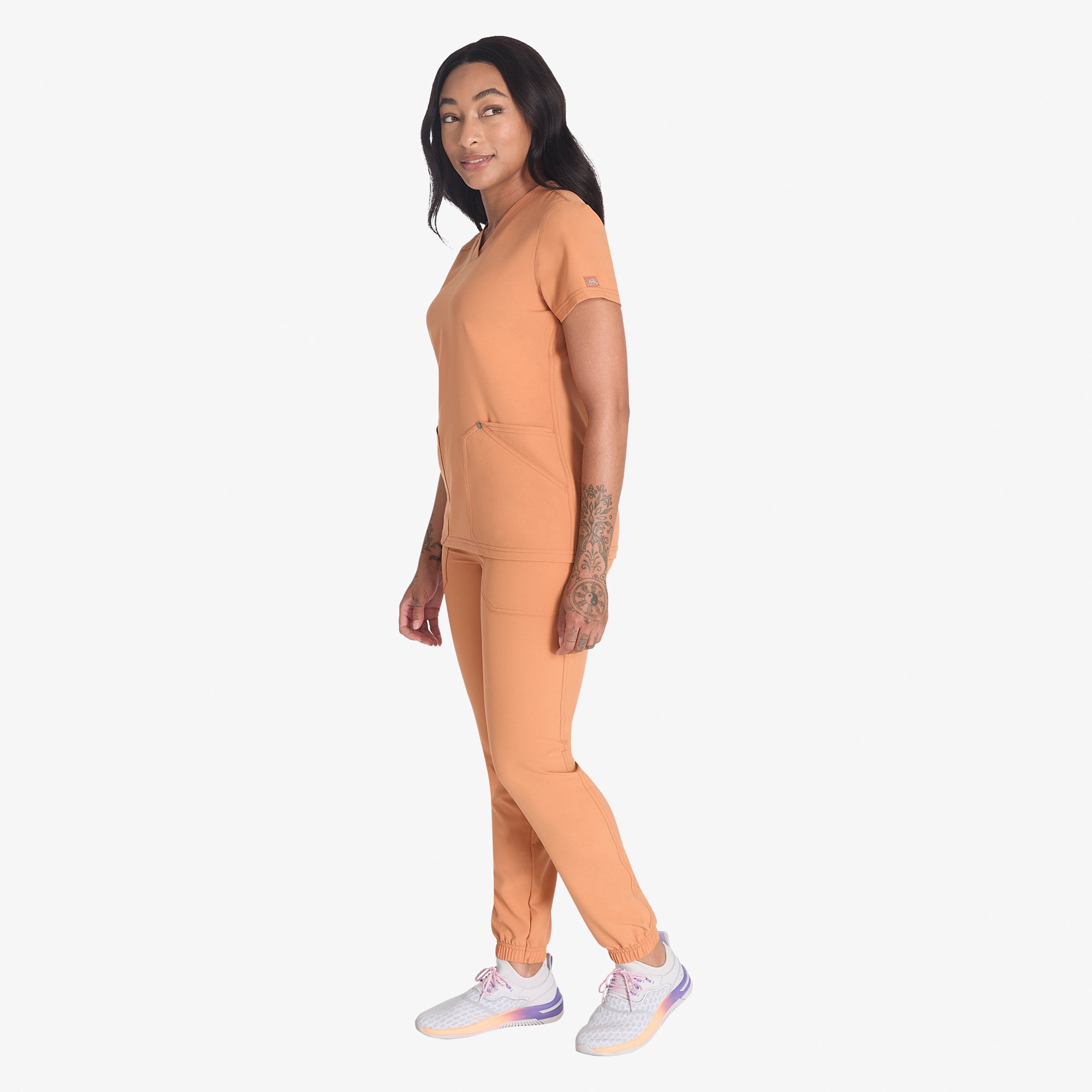 The details don’t disappoint on this Contemporary fit V-neck top. There is decorative stitching on the neckband plus decorative topstitching on all seams for added style. Four pockets create organized storage with double patch pockets on each side (right features a pen/instrument slot). Decorative logo snaps at pocket corners. A back yoke completes the look.