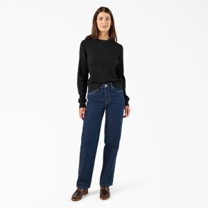 Our women’s Farner jeans are a closet staple you can always count on. The jeans are crafted from 100% cotton denim and feature a mid rise. relaxed fit and straight leg style. The women’s jeans have a zip fly and button front closure. leatherette Dickies patch. pocket rivets. and authentic heritage-inspired details.