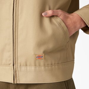 When women find a product with good qualities they can trust. they stay loyal to it. That’s how the Dickies Women’s Insulated Eisenhower Jacket has remained a trusted style by women for over 70 years. Offering modern functionality while maintaining a classic silhouette. this Dickies staple is durable yet stylish. Featuring a water-resistant exterior with a polyurethane coating. its cotton/poly fabrication helps you withstand the elements. Simple and easy. that’s how you stay warm and cozy.