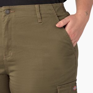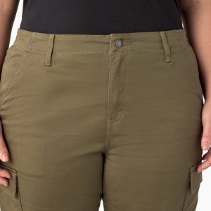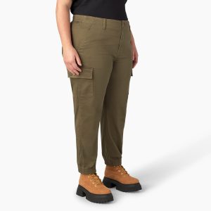 The Dickies Women’s Plus High Rise Fit Cargo Jogger Pants have a proper jogger fit. tapering at the ankle. along with plenty of practical pocketing. Elastic along the back waist provides a comfortable custom fit for easy all-day wearability and straightforward styling that works all year round. This simple style has a tack button closure and dual front slash pockets. The high-rise. flat-front cargo pants also feature rear patch pockets and functional dual-side cargo pockets. These pants are good for both the workplace and the weekend.