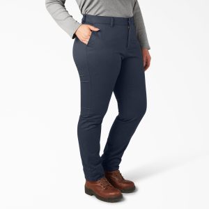 Don’t sacrifice the perfect fit when it comes to your favorite skinny pants. Dickies Women’s Plus Mid Rise Skinny Leg Pants offer straight forward styling with features that enhance your comfort and mobility day in and day out. The slight stretch twill fabrication allows for ease of movement and the contoured waistband prevents gapping in the back. Sitting just below the waist. these go-to skinny pants are equipped with a front button closure and dual back welt pockets. ensuring easy wearability at work or for casual everyday styling.