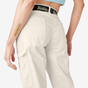 Dickies Women’s Relaxed Fit Carpenter Pants provide the utility of traditional carpenter pants with a more modern fit that is perfect for those who work hard. Sturdy with some stretch. these pants were built to last and help you do your job. The pants feature a hammer loop in traditional carpenter styling. front slash pockets. a watch pocket. rear patch pockets. and utility pockets. Each pair comes with a simple yet stylish Dickies logo belt.