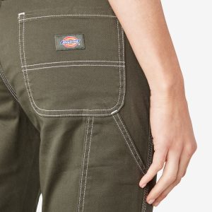 Dickies Women’s Slim Straight Fit Roll Hem Carpenter Pants are designed with the utility features you need in classic workwear pants with a modern fit. The pants feature the traditional carpenter detailing with a hammer loop. side utility pockets. dual front slash pockets. and rear patch pockets with the Dickies iconic woven label. A rolled hem at the ankle cuff and contrast stitching along the pockets and seams give the pants a stylish look. Yet these pants are sturdy enough for the workplace.