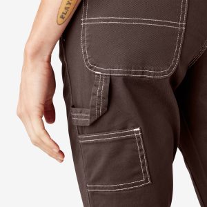 Dickies Women’s Slim Straight Fit Roll Hem Carpenter Pants are designed with the utility features you need in classic workwear pants with a modern fit. The pants feature the traditional carpenter detailing with a hammer loop. side utility pockets. dual front slash pockets. and rear patch pockets with the Dickies iconic woven label. A rolled hem at the ankle cuff and contrast stitching along the pockets and seams give the pants a stylish look. Yet these pants are sturdy enough for the workplace.