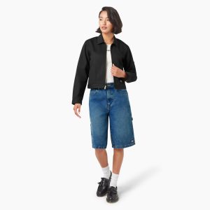 The Eisenhower jacket has long been one of our most iconic styles. Now. we’ve updated our classic silhouette with a cropped length. The cropped jacket stays true to the original with angled front welt pockets. a pocket on the sleeve. adjustable waistband buttons. and our signature workwear twill fabric.